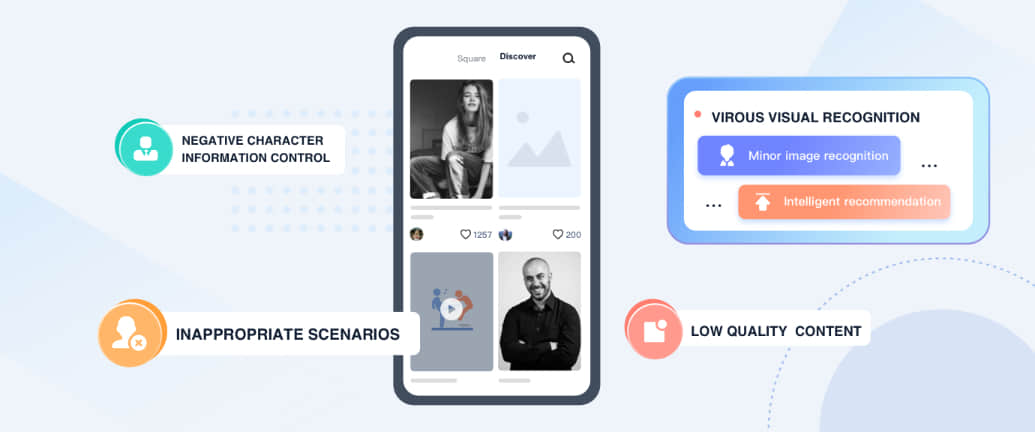 Detects low-quality images with blur, smears, mosaics, watermarks, etc. Recognizes still images, eating broadcasts, empty broadcasts in live streams, posters with large text, handwritten content, dense content, and disgusting content. Also identifies various app screenshots.