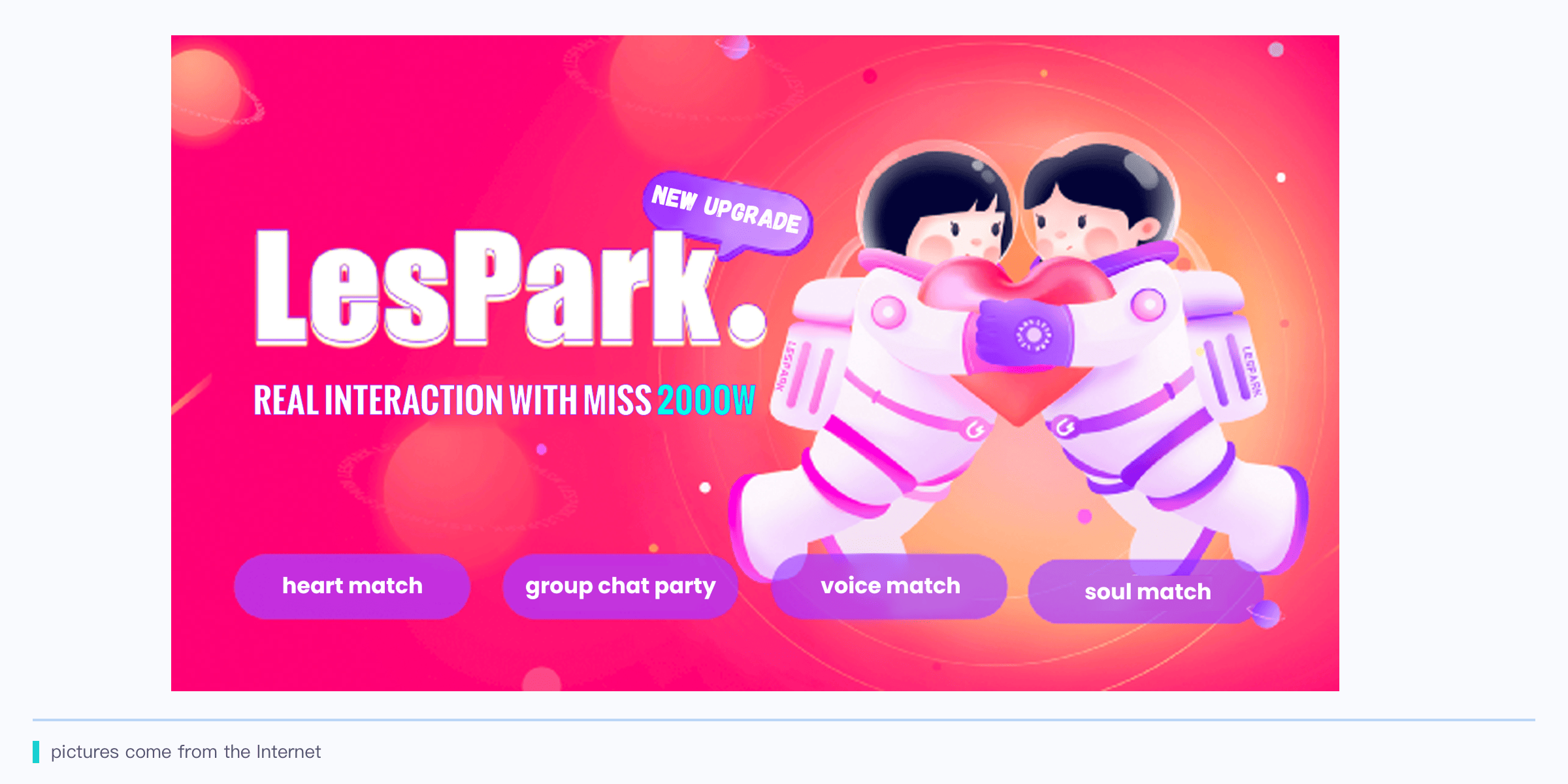 LesPark is an all-female content social app. It has been online for 8 years, covering live broadcast, short video, graphics, audio and other content forms. Users can socialize, entertain and share life in the community. According to the official disclosure, the cumulative number of users on the site currently exceeds 20 million, with a monthly activity level of one million, and the number of anchors exceeds 150,000.