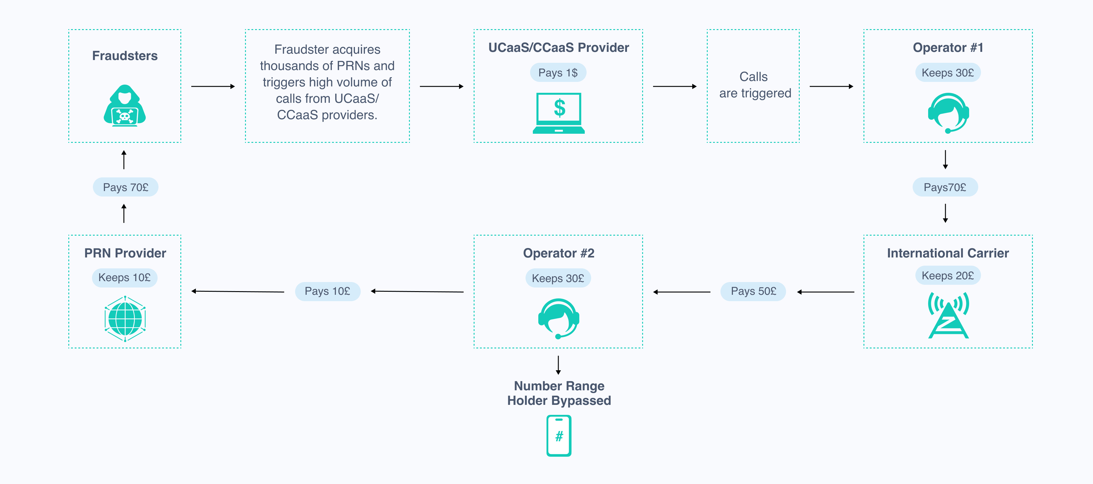 How IRSF attacks: Fraudsters illegally obtain high-rate numbers or ranges of numbers that are used to register on apps and websites, log in (e.g., Multiple Factor Authentication), trigger voice calls and/or verify text messages. They then collude with international number providers and content providers to artificially increase traffic and take a share of the revenue from the phone charges generated.
